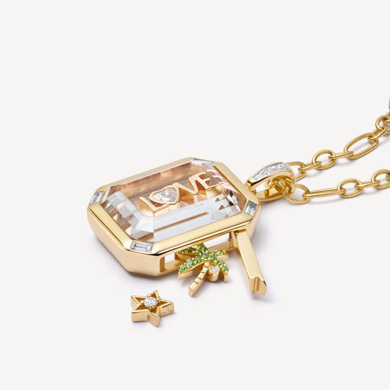 Colors: Square full-diamond transparent glass necklace, square transparent glass necklace, horseshoe (single accessory), cross (single accessory), moon (single accessory), blue small flower (single accessory), pink heart (single accessory), LOVE (single accessory), little cat paw (single accessory), coconut tree (single accessory)